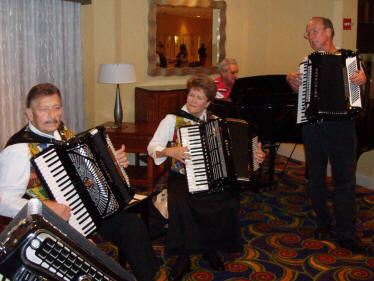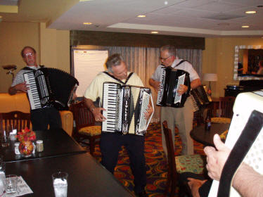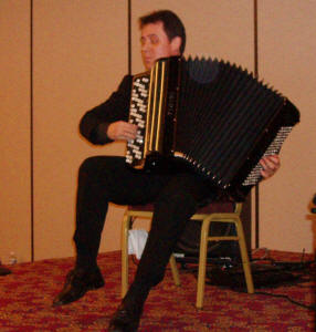 Festivalorkesteret, under ledelse av presidenten i American Accordionists’ Association, Linda Soley Reed, rakk også å øve igjennom stoffet de skulle fremføre på konserten lørdag kveld. Karen Adam hadde også i år hentet fram noen ekstra godbiter foruten bl.a. Nick Ballarini og Carmen Vitanza. Tony Lovello virket å være i storform etter noe ryggproblemer tidligere år. Hans glissandoer og belgristinger er blitt hans varemerke, mens han samtidig ”stroller” mellom publikumsradene. |
