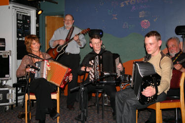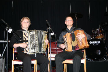 | Halvard Haugen fremførte en hyllest til Storefjell og trekkspilltreffet - til melodi av Nibstads "Livet på Storefjell" | Lars Nibstad fremførte flere av sin fars låter under konserten |