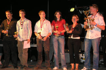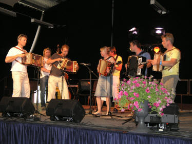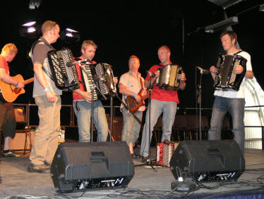 Det hadde vært plass til mange flere i den store festivalhallen, og i år kunne man ikke skylde på været heller vedr. publikumstilstrømningen. Vi talte sånn omtrentlig 200 tilhørere under semifinalen, og om lag 500 personer var inne i festivalhallen under premieutdelingen lørdag kveld. Om lag 100 campingvogner var å observere på den heller slitte festivalplassen som led under den foregående helgs ”countryfestival”. Det er i alle fall liten tvil om at Titanofestivalen har kommet på rett spor igjen, og vi håper at enda flere tar med seg campingvogna et par dager i juli neste år for å danse og lytte til dyktige utøvere. |