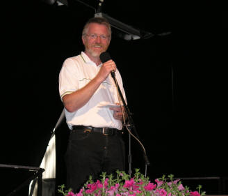 | Harald Bu - mannen som sørget for at alt gikk etter programmet. | Konferansier Reidar Stangenes. |