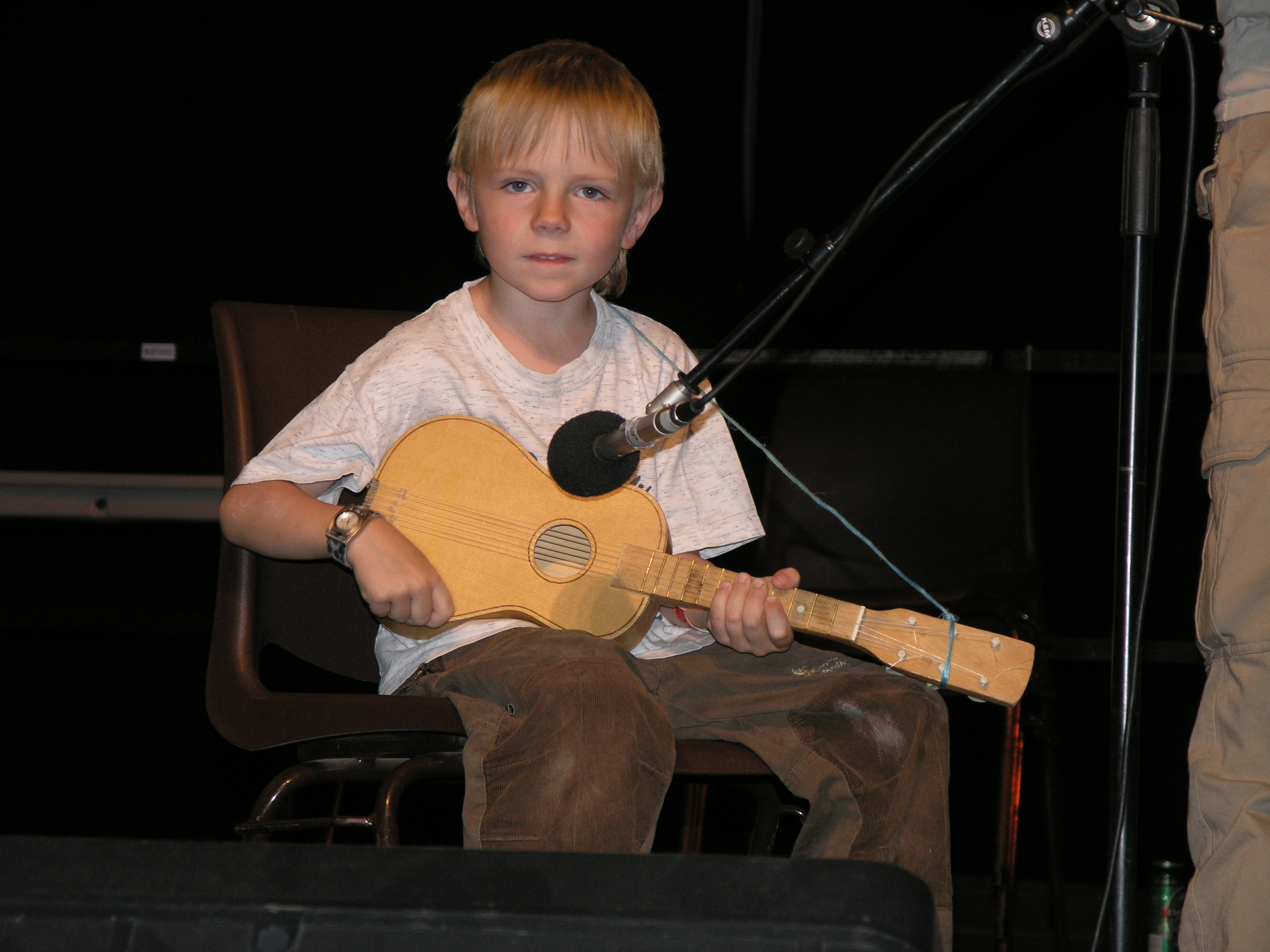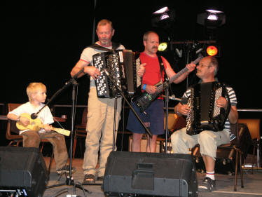 | Gruppa "Litt tå kårt" var den den eneste påmeldte i klassen for NM gammeldans rene trekkspillgrupper og vant dermed denne med 137 poeng. | .....og så var det klart for lydprøve for denne vesle taktfaste gitaristen. |