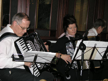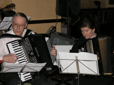 | Gerd og Aage Thuen i Halden Trekkspillkvartett. Frank Thomassen bak på gitar. | Yngvar Strøm og Mari Amundsen - med i Halden TK, Halden Trekkspillkvartett og "Marinetta". |