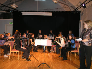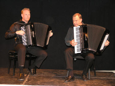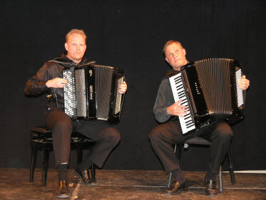 Ettersom vi befant oss i Oslo Kulturskoles lokaler, var mange av tilhørerne naturlig nok trekkspillelever fra Oslo og Bærum musikkskole. Den meget unge trioen TaLaNam fremførte etter pausen ”Kontradans” av L. Beethoven, mens de noe eldre elevene i Trekkspilljuniorene åpnet hele konserten med ”Lokker’n” av Gotthard Erichsen i et spennende og annerledes arrangement av Anders Grøthe. Øivind og Jörgen fortsatte så sin andre konsertavdeling som bar preg av et mer underholdnings-preget repertoar. Pietro Frosini hører med på en skikkelig trekkspillkonsert og ”Vårserenade” kunne vel ikke passet bedre. ”Jolly Cabarello” dro vel også de fleste kjensel på, hvorpå de roet det ned igjen med en russisk folkemelodi som kan oversettes til noe slikt som ”I det fjerne lyder byen”. Så var det brått over til New York i rushtida – ”Five o’clock rush”. Avslutningsnummeret var vår personlige favoritt – nemlig Wolmer Beltramis ”il treno” (toget), som de alltid fremfører så fabelaktig godt sammen. De var vel ikke overrasket over at publikum ville høre mer, og som om de akkurat ikke hadde gjort nok fingerøvelser på klaviaturene denne ettermiddagen, valgte de ut Arnstein Johansens pasadoble ”Akrobaten”. |