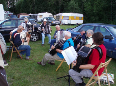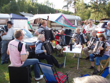 For de som liker campingliv i kombinasjon med trekkspill, kan man stort sett holde det gående kontinuerlig fra begynnelsen av juni til ut august måned. Noen legger sågar opp ferieplanene slik at de får med seg flest mulig festivaler. Fra ”Bälgspel vid landsvägskanten” i Ransäter bar det for mange rett over til det nye treffet på Persmoen Aktivitetssenter i Åbogen litt sør for Kongsvinger. Derfra var det ikke mange mil til det mer etablerte treffet i Gräsmark 5 mil øst for Charlottenberg den påfølgende helgen. |