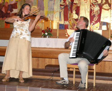 Om man løfter blikket litt opp i skråningen idet man passerer IKEAs nye gigantbygg i Asker ved E18 i fin fart, får man øye på Holmen kirke. Her har det i flere år vært arrangert sommerkonserter – og det i beste fellesferietid. Til tross for tidspunktet var det mange som hadde funnet veien 18. juli for å høre på Askerjenta Lena Rist-Larsen og svenske Jörgen Sundeqvist. De to ”debuterte” som duettpartnere i Stovner kirke i vinter, og dette har tydeligvis gitt mersmak. Ettersom tema for kvelden var glede, falt det dem naturlig å starte med den lette og lystige Norsk dans nr. 2 av Edvard Grieg – bedre kjent som ”Norge Rundt”-vignetten. Utgangspunktet var en firhendig klaverversjon arrangert av nylig avdøde Galla-Rini, som forøvrig har vært en av Jörgens læremestere. Russisk originalmusikk for trekkspill fenger alltid, og det gjorde også ”Den lustiga klockan” (fritt oversatt av Jörgen) av Anatoly Shalayev.