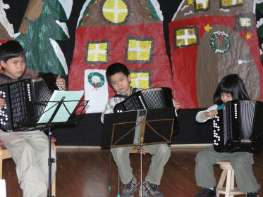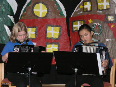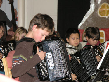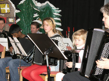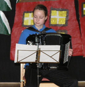 Live Berger Brekke og Ida Løvli Hidle, som gjorde en formidabel innsats under VM på trekkspill i Asker i oktober i 2006, har vokst ut av Kulturskolen, og befinner seg for tiden som musikkstudenter i Trondheim. Derfor var Kenneth Larsen (16) blant de eldste på kveldens konsert og hadde en fin fremføring av Vittorio Montis ”Czardas”. |