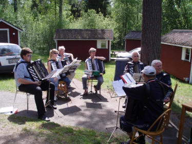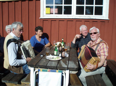 1.-3. juni 2007 dro han like godt i gang et nytt trekkspilltreff på Laxsjön Camping og Friluftsgård i Dalsland i Sverige. Plassen har en sentral beliggenhet ved vannet Laxsjön mellom Billingsfors og Dals Långed, og har god kapasitet til campingvogner samt en del hytter for overnatting. Dessverre plasket regnet ned hele fredagen, men trekkspillere er ved godt mot og vendte ikke nesa hjem for det selv om det gikk litt trått med dansen utendørs. Lørdag morgen våknet man derimot til solskinn og blå himmel, og det ble hyggelig å overvære konserten i det fri på ettermiddagen. Gerd og Aage Thuen framførte bl.a. polkaen ”På akebrettet” som er tilegnet dem, men vi trenger neppe å ta fram dette på en stund. Lørdag kveld var det musikk og dans til utover mot midnattstider. |