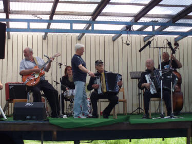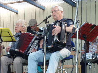 Alternativene er mange sommerstid når det gjelder trekkspilltreff. Til tross for at ulike Aktivitets- og Kulturkalendre er tettpakket med musikalske tilbud til publikum og utøvere, er det stadig noen som drømmer å arrangere sitt eget treff. Frank Kjell Andresen er en av disse. Trofaste festivalgjengere kan vanskelig ha latt være å legge merke til denne omgjengelig og musikalske fyren. Traktering av gitar, bass og trekkspill går like fint. I tillegg er han begavet med en sangstemme som egner seg perfekt i jazzsammenheng. Han er stadig vekk å observere sammen med Halden TK og Moss TO – og på festivaler er han til stadighet å finne på scenen. |