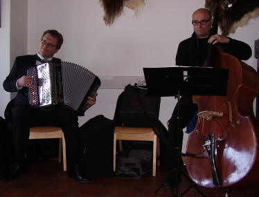 Søndag 4. november var det mer enn høner og kaniner som trakk folk til Nordre Lindeberg gård, som ligger godt synlig plassert langs E6 på vei ut av Oslo. Gården er et fint tilbud til byens befolkning og drives av Bydel Alna som denne søndagen inviterte til kafékonsert med duoRETRO. Duoen presenterer fransk musette – retro og inn i tiden, og består av Håvard Svendsrud på musettetrekkspill og Kay Hartvigsen på bass. Det var ikke bare de voksne som fikk gode fornemmelser av de franske tonene. Også barna satte pris på den livlige musikken. God innlevelse i fremføringen og folkelighet skapte en utrolig stemning. Kaféen var stapp full av folk i alle aldre, og mange av de yngste benyttet anledningen til å danse. |