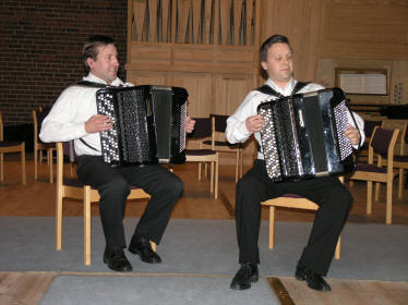 Deretter ble det helnorsk med duoen Stian Aase og Lars Røyseng på trekkspill, som også kaller seg Duo Jupiter. De deltok i programmet Kjempesjansen og var med og representerte Norge i VM på trekkspill i fjor høst. I Ekholt kirke framførte de Holbergssuiten, 1. og 5. sats, av E. Grieg. Svenneprøven på trekkspill er vel et forbilagt stadium for både Lars og Stian, men folkemusikeren og trekkspilleren Jo Asgeir Lie fra Ål hadde laget dette stykket opprinnelig til sin kone Ingunn S. Sørbøen Lie med nettopp denne tittelen, og har arrangert den for Stian og Lars senere – ”Svenneprøva”. |