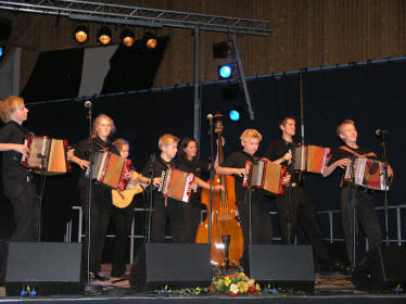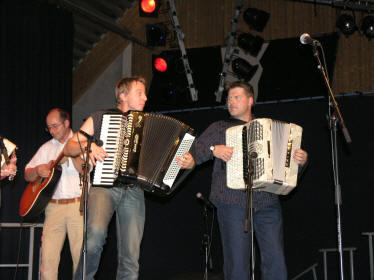 | "Bæljtrøkken" - Kim Nielsen (trekkspill t.v.) og Dag Nordli. Willy Jacobsen på gitar i bakgrunnen. | "Bæljtrøkken" - Eivind Kjernsli |