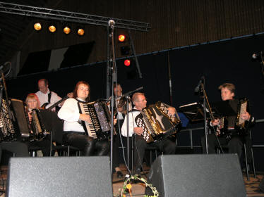 Frank Andresen var hentet inn som kveldens programleder. Det var også innleid førsteklasses lys- og lydutstyr. Den romslige scenen var delt i to, slik at musikerne avløste hverandre uten noe stopp i programmet. De presenterte et variert repertoar, og vi vil tro at alle de fremmøtte fikk høre noe de likte. Eksempelvis hadde de to glade herrene Aksel Dyrud og Narve Granberg blant annet en Hadelandsrag fra Sverige på programmet, ”Litt Bakpå Hæla” tok seg av swingrytmene og ”Bæljtrøkken” varierte lydbildet med fløyte kombinert med trekkspill og torader. 2RE-2NE-R2 3KKSPILLTROLL hadde salgsutstilling av trekkspill i foajéen og mange var innom for å prøvespille.