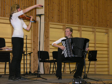 | Unge "Yngvild og Johanne" fikk publikumsprisen for sin imponerende fremføring. | Johanne Løvli Hidle (t.v.) og Yngvild Vivja Haaland Ruud. Yngvild fikk også 128 poeng og dermed 1. plass i klasse S3 - solist 15-17 år. |