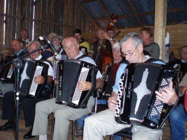 | ”Revehiet” var smekkfullt under åpningen fredag kveld – ikke av rever, men av trekkspillere som var samlet til felles avspilling av bl.a. – naturlig nok – ”Livet i Finnskogarna”, som bare ligger et ”steinkast” unna. | Allspill og åpning |