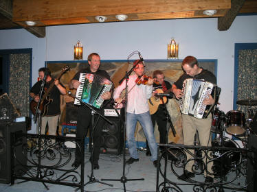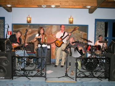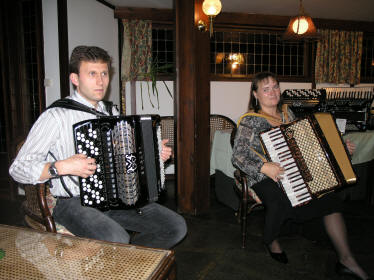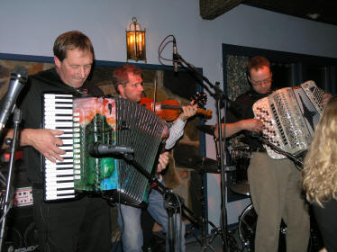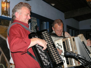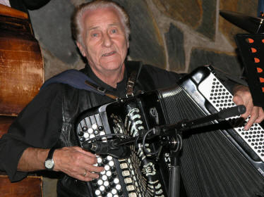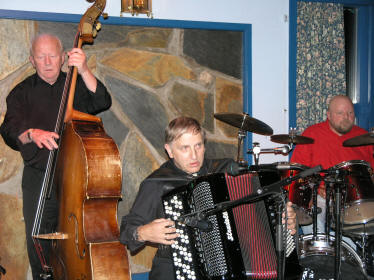| Den ene halvdelen av Kalle Johnsens kvartett... | ....og den andre halvdelen. Her Kalle selv med trekkspillet. |