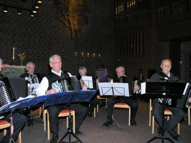 Oslo og Akershus krets av NTL (Norske Trekkspilleres Landsforbund) og Stovner Menighet har samarbeidet om konserter i mange år. Sokneprest Anders Moen Kvalsnes er en musikkglad prest og presiserte for de fremmøtte at selv om konsertene har blitt en tradisjon, er de på ingen måte tradisjonelle. Den røde tråden er at innholdet skal bestå av trekkspill og korsang. |
