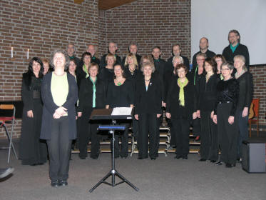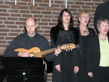 Pausene blir vanligvis ikke nevnt, men på Stovner-konsertene er disse en viktig del av helhetsopplevelsen. Vi observerte at praten som vanlig gikk livlig, og at mange gjerne skulle ha vekslet flere ord idet tiden var inne for igjen å finne plassene før Rælingen Sanglag var klar med sin avdeling. Dette er det eldste koret i kommunen og dirigeres av Kari N. Bernhoft. De teller i snitt 30 stk. og kom forøvrig rett fra seminar. De virket i alle fall langt fra lei av sangen i så måte og framførte både madrigalen ”Fair Phyllis I saw” og Shakespearetekster. Pop-hjørnet ble også løftet på med ”Can’t buy med love” og ”Wonderful tonight”. De påsto også de syntes det var litt dristig å bevege seg på folkemusikkgrunn ettersom det var så mange trekkspillere til stede, men de kom da fint igjennom både ”Dalakopen”, ”Pål sine hønur” og ”Astri, mi Astri”. ”Halleluja” av Leonard Cohen ble fremført til slutt med Geir Finnstun på gitar. |