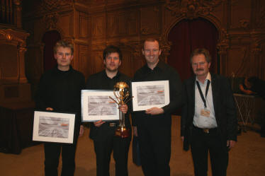 Fornøyde Det var en sliten og glad gjeng som søndagen kunne sette kursen hjem. Ragnar Johnsen, Kai Andre Hansen og Glenn Sørskår syntes det hadde vært et meget bra arrangement. Innkvartering og transport hadde fungert utmerket og alle som jobbet med arrangementet hadde vært veldig velvillige. De var alle enige om at enkelte ting helt klart kunne forbedres både når det gjaldt konkurranseregler og arena, men de så jo at dette også må sees i sammenheng med at det var første gang denne konkurransen ble gjennomført, så enkelte barnesykdommer må man jo regne med. Men hva gjør vel det når man har en flott pokal og en fet sjekk i kofferten.
