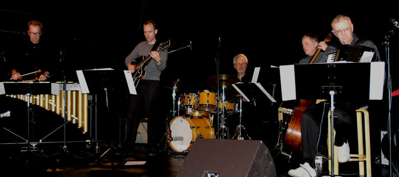Konsertturnéen i Skandinavia som her introduseres av Lars Arnevig, gikk fra Asker til Østersund, Stockholm og Kalundborg, og endte opp i Aage Tanggards studio i Allerød litt nord for København hvor det ble gjort opptak til CD med denne unike kvintetten. Så snart vi vet den er ferdig og har nærmere info om hvor den blir å få vil vi selvfølgelig legge ut dette her. Det ryktes at det også med det første vil bli noen videokutt å finne på YouTube fra turnéen. |