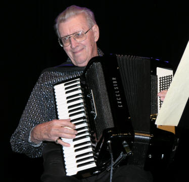 Med 9 timers tidsforskjell i kroppen entret California-boeren, som pussig nok er født 9. april 1920 i byen Norway i Michigan scenen, med glimt i øyet. "Jeg sto og spilte i mine yngre dager, men jeg unner meg å sitte nå for tiden. Trekkspillet pleide å veie 30 pund, men nå føles det som 300, og det kommer til å ta en stund før jeg får på meg seletøyet". "Da jeg var 75 år tenkte jeg det var på tide å gi seg. Etter 2-3 år var jeg nødt til å ta fram trekkspillet igjen, da spillegleden tok overhånd." Han konserterer fortsatt, men av hensyn til alder og helse begrenses det nå til 3-4 konserter pr. år. |