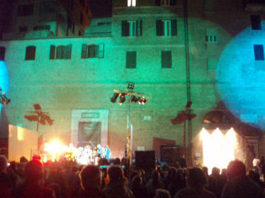 | Med bymuren som naturlig kulisse beæret trekkspilleren Vincent Abbracciante Borsini-familien i forbindelse med bortgangen av et familiemedlem | Fullmåne, fin temperatur og stemning |