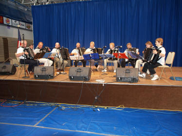 Ikke mindre enn 9 trekkspillere, bassist, gitarist og to ”bedre halvdeler” entret flyet til Minneapolis i hjertet av Midt-Vesten – det ”norskeste” distriktet av alle i USA. Allerede i immigrasjonskontrollen merker man at atmosfæren er annerledes enn det man opplever i det hektiske New York-området. De store pappeskene vi kom bærende på vekket naturlig nok nysgjerrighetene hos myndighetene, men da de fikk vite at de inneholdt trekkspill gikk det ikke lenge før de fortalte om en fjern slektning som utvandret fra Norge og som ofte spilte trekkspill. Det er alltid hyggelig å føle seg velkommen på et fremmed kontinent. |