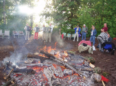 En konsert med Tony Lovello, som også kalles ”King and Master of the Bellow Shake” er umulig å beskrive med ord – han er en trekkspillentertainer på 75 år uten sidestykke. Etter hans opptreden med glissandoer, belgristinger og vibratoer, hadde vi en liten prekonsert og ga publikum smakebiter på hva vi skulle fremføre på vår egen konsert dagen etter. Da møtte overraskende nok enda flere opp, og jammen ble vi ikke invitert av den lokale Sons of Norway foreningen med på St. Hans fest også med et kjempebål på en campingplass ved Lake Superior. |