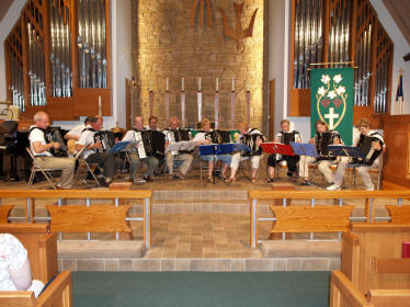 Ordentlig kirkekonsert med gammeldans på repertoaret ble det også på oss. Trinity Lutheran Church i Detroit Lake hadde markedsført konserten bra og rundt 300 hadde funnet veien. |