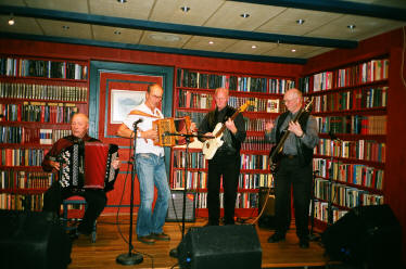 Så var dansen i gang igjen, men før den tok til, fekk vi ei koseleg økt med gruppa Sprell i salongen. Akustisk framføring og du som dei kunne spele. Førsteplassen på Landsfestivalen 2008 var nok fortjent. To trekkspel og med fiolin på topp, samt bass + gitar - alle dyktige på sine instrument. Kanskje ikkje rett å framheve nokon spesielt, men karen med fiolinen hadde i alle fall det som skulle til for å ligge åleine på topp med melodilinja.