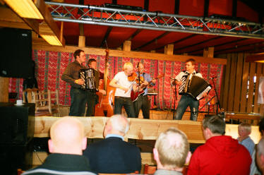Dansen starta frå to scener og gjekk slag i slag til langt på natt der dei fleste fekk mosjonert. Ute var det skikkeleg haustver, og noken vart nok litt engstelege for turen neste dag da vegane var i ferd med å bli snødekte. Noken gjer ein litt større innsats enn andre, der eg har lyst å nemne bassist Karl Rønneberg og gitarist Rolf Nerhus - begge frå Valldal, også kalt Holekarane. Rutinerte og fleksible karar som hjelpte oss og svært mange andre med god og stødig komp under treffet. Det vart etterkvart mange speløkter før dei ut på natta kunne ta fatt på heimvegen.