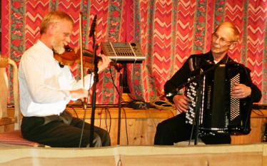 | Gruppa "Jakup". Det beste frå øst og vest forenes i samspel mellom desse veteranane. Arne Sølvberg, fele. Kjell Plassen, trekkspel. | Lund og Stegegjerde serverte lokalt stoff frå Sogn. Begge spelar i B-gjengen. |