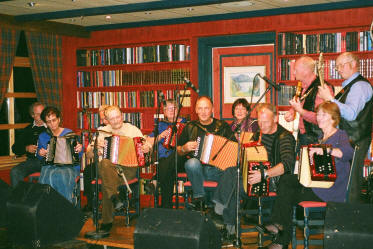 Reitans gruppe med toradar og komp av "Holekarane". Kjell Tafjord, trekkspel |