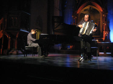 Galliano hadde ikke med seg sitt bandoneon som han bruker mye i tangosammenheng. Denne kvelden benyttet han kun sitt kromatiske knappetrekkspill. Midtveis i konserten leverte de hvert sitt solonummer. Galliano valgte en medley av klassiske fuger og man fikk assosiasjoner til trekkspillets opprinnelse – nemlig et transportabelt kirkeorgel. Umerkelig gled han derfra inn på Liebertango hvor han ga alt. Lundgren valgte svenske folkemusikktoner i jazzarrangement som minnet mye om Jan Johansson-stilen.