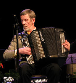 Direktør Erik Vadholm i Akershus Fylkeskommune sa i sin åpningstale at det er spesielt viktig å ta vare på imaginære kulturminner som ikke er dokumentert, det være seg viser eller historier. Han understreket også at tradisjonsmusikk ikke nødvendigvis er folkemusikk fra dalførene, men også runddansmusikk fra flatbygdene. Lensbygda TK fortsatte med ”Arnes masurka”, ”Nyttårsklokker” (vals) og ”Hilsen til Toten” – en lokal slått. Angerd og Henry Hoel var selvsagt invitert som gjester, samt sønnen Morten Hoel. Morten har også vært elev av Ottar, men sluttet å spille i 1985. Han kunne fortelle at han var nøye på belgbruk og rytmikk. På bussen fra Oslo til Skreia skrev Ottar ”Mortens Skreiavals” som vi også fikk høre fremført av Lensbygda TK. Feriene tilbragte nemlig Ottar på Toten. |