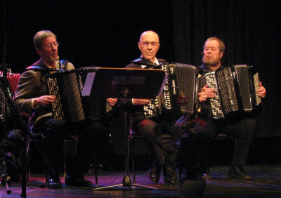 | Med scenen overlatt til Faukstad og Blyverket for første gang sammen, fikk vi høre ”Festivalmarsj”, ”Guerrini polka” og en meget virtuos masurka, ”Triollek”. ”Telemarksving” var kanskje den som flest i salen dro kjensel på. Denne er ikke laget av Nyborg, men finnes på en plate utgitt der han spiller sammen med sin elev Alf Blyverket. Nyborg var også klassisk skolert og har bl.a. komponert en 4-stemt fuge som forenklet beskrevet fungerer nærmest som kanon. Denne ble således framført av Harry, Leif, Alf og Jon. |