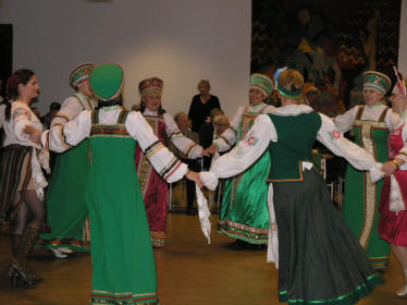 Arrangørene hadde også invitert sangkoret "Kalinka" til å være med. Korrekt gjettet var samtlige av sangkorets kvinnelige medlemmer av russisk herkomst og fremførte av alle ting "Hvem kan seile for uten vind" til akkompagnement av "Noteslavene" fra Drammen Trekkspillklubb. Kledt i vakre, ulike russiske nasjonaldrakter var de et artig innslag i Øvre Eiker Rådhus i Hokksund der de underholdt i pausen også med russiske ringdanser. Publikum syntes tydelig også det var artig da de ble invitert til å delta i ringdansen.