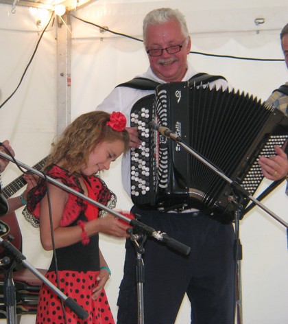 God hjelp til å holde takta fikk han her av unge frøken Jenny (Aspelund) med 'rytme-egg' - Jenny er også i god gang med å bli toraderspiller - vi fikk rede på at hun er elev hos Jørn, og vi gleder oss til å høre når hun stiller opp på Skinnesmoen med torader i de kommende åra..