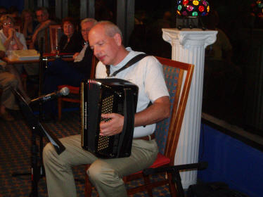 Friday night started in the usual relaxed tempo in the Café Accordion at the hotels Front Street Café. Just as always the smiling Alvaro “Beaver” Barsi kept track of the playing schedule but found it difficult to limit everyone to play just two melodies giving as many as possible the chance to play. |