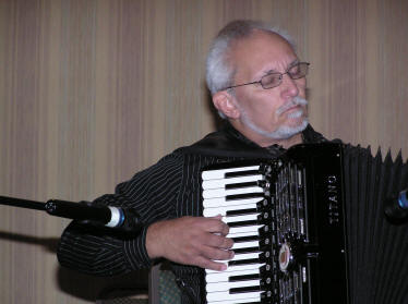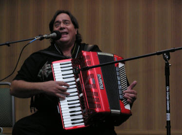 Antonio Barberena had several duties that evening. Totally impassive Karen Adam introduced all the artists as she always does. Shortly after the 2007 SMASH, Karen announced that she intended marrying the accordionist Walter Kasprzyk (well known as a member of the famous “K” Trio). Antonio quickly had to change into his tuxedo to be Walters best man. Tony Lovello was the music maestro and Karens 9 year old student, Jamie, was the ring bearer. After the wedding ceremony everyone went straight over to the Front Street Cafe to cut the accordion shaped cake and dance the wedding waltz. The party continued into the wee small hours. |