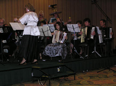 America’s President elect, Obama, faces great challenges ahead. So far, we have not heard if he plays a musical instrument, if he does it is doubtful if it would be an accordion. President Karen Adam of the Florida Accordion Association (FAA), is far from a newcomer and has been responsible for arranging earlier SMASHes. The Southeast Accordion Association includes the states in the Southeast corner of the USA – Florida, Georgia, Alabama, Mississippi, Tennessee, North and South Carolina, Kentucky, Virginia, and West Virginia. It is always challenging to arrange for large numbers to come together in a gathering, but it is so much more difficult when there are such large distances involved. Approximately 200 decided to take a holiday in Florida to play music and generally have a good time. This year, the youngest attendee was 9 year old Jamie Miyagawa from Navarre in Florida, who demonstrated what she had learned on the accordion since she started in March. The SMASH' eldest was over 90 years of age. |