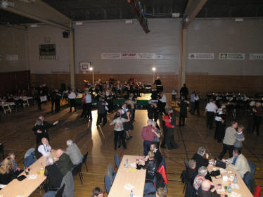 Trøgstadhallen i Indre Østfold brukes til mer enn ballspill og andre idrettsarrangementer. En gang i året tinger i alle fall Trøgstad og Båstad Trekkspillklubb den store salen til dansemoro. De har helt kommet ut av tellingen - Harder Sandvik spiller selv i Trøgstad og Båstad TK og mener bestemt at det må være over 15 år siden den første dansekvelden ble arrangert. Han har for øvrig hatt konferansierjobben i alle fall de siste 6-7 årene. Lørdag 1. mars 2008 var salen igjen omgjort til festformål, og 10 klubber og orkestre hadde meldt seg på spillelistene. Både Drøbak, Nes og Halden Trekkspillklubb er gjengangere. Spydeberg Trekkspillklubb og Svingen Torader fra Rakkestad hadde noe kortere vei.