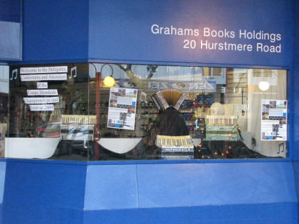 | Vindusutstilling hos bokhandleren i Takapuna |