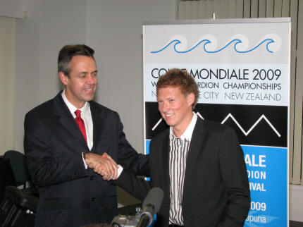 | President i CIA Kevin Friedrich gratulerer den glade vinner av både klassen for Coupe Mondiale og Virtuoso Entertainment - Grayson Masefield fra New Zealand!!! | En velfortjent dobbel seier på hjemmebane, men dette har han helt klart jobbet hardt for når vi tenker tilbake på Coupe Mondiale i Portugal i 2005 der vi hørte ham første gang. |