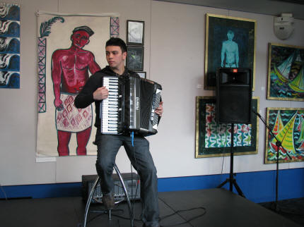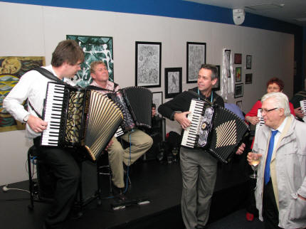 | North Shore Accordion Orchestra dirigert av entusiastiske Lionel Reekie som så ut til å kunne lette fra gulvet under framførelsen av "Flashdance". | NSAO er amatører med tenåringer og unge voksne som møtes en gang i uka for å ha det gøy med å spille trekkspill. De har spilt i Australia og var også gjesteorkester under Coupe Mondiale 2007 i Washington DC. |