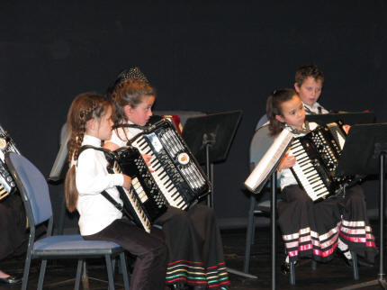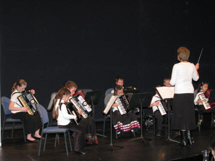 | North Shore Music Makers Accordion Orchestra er en entusiastisk gruppe med barn mellom 6 og 12 år. De øver ukentlig under ledelse av Christine Adams. | De finner melodier som er populære blant utøverne og det viktigste er å ha det gøy under læreprosessen samtidig som man har tilhørighet til en gruppe. Alle får også etter tur anledning til å spille på basstrekkspillet, noe som er en fin erfaring for dem. |
