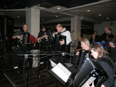 | Moss Trekkspillorkester.... | ...med en litt "amputert" besetning, men det låt som ei kule! |