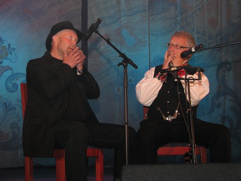 Innledningsvis nevnte Hallgrim Berg klarer fortsatt ikke helt å unngå å blande seg inn i programmet, her på munnharpe sammen med Bjørn Kvinnegard - som er medlemmer i "Leksvol munnharpelag". |
