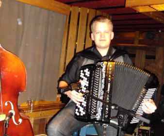 Nye Ringnesin stod fram i litt ny drakt, og du store verden kor det svinga. To trauste feler med etternavn Odnes og Rui og ditto trekkspelarar som alle kunne sine ting. Her kunne ein berre lene seg tilbake og nyte eller nytte høvet til ein svingom. Den andre kombinert gruppa var Syvers Orkester som dukka opp som "outsidere" på Storefjelltreffet i mai og toppa galant resultatlista når denne var klar utpå kvelden. Gudbrandsdøler, også dei med god komp og ei solid "feletaus", Tonje Lien Barkenæs frå Nannestad, som eg har sett tidlegare saman med "Deltakarane", som havna i finalespel på Landsfestivalen for nokre år sidan. Syver Olstad på trekkspel er gamal rutinert ringrev som har inne mykje teknikk og massevis tradisjonsstoff. Han trives tydelegvis i lag med ungdommar som Stein Magne Eggen, og saman fyller dei fint ut kvarandre og dannar eit fin bakteppe for fela, som ikkje hadde nokon tekniske begrensningar det eg kunne høyre. Uvanleg fin tone og melodiføring. |