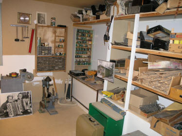 | The accordion museum in Ikaalinen. | An identical old accordion repair office is rebuilt in the second floor of the museum. |