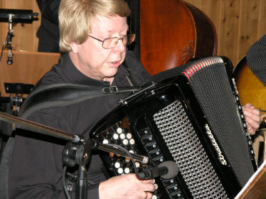 Swingkvintetten med Terje Martinsen (trekkspill), Sigurd Johannessen (trekkspill), Per Bredesen (bass), Vidar Rogstad (gitar) og Asbjørn Holm (trommer) fikk oss i jazzhumør. Med sine velklingende arrangementer skrevet for kvintetten av Sigurd og Terje ble det både velkjent og noe nytt jazzstoff. Denne kvelden hadde de med seg unge Henriette Rojahn (bildet t.v.) fra Drammen som vokalist på flere innslag. Med bakgrunn i både klassisk sang og piano er hun godt skolert musikalsk. Innlevelsen i "My funny valentine" og fremføringen av "Young at heart" fenget uten tvil.